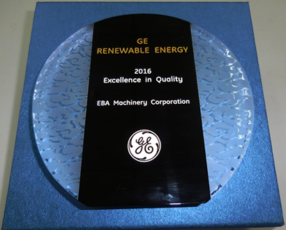 エバマシナリーがGEより品質の部門において表彰され、表彰状と記念の盾をいただきました。